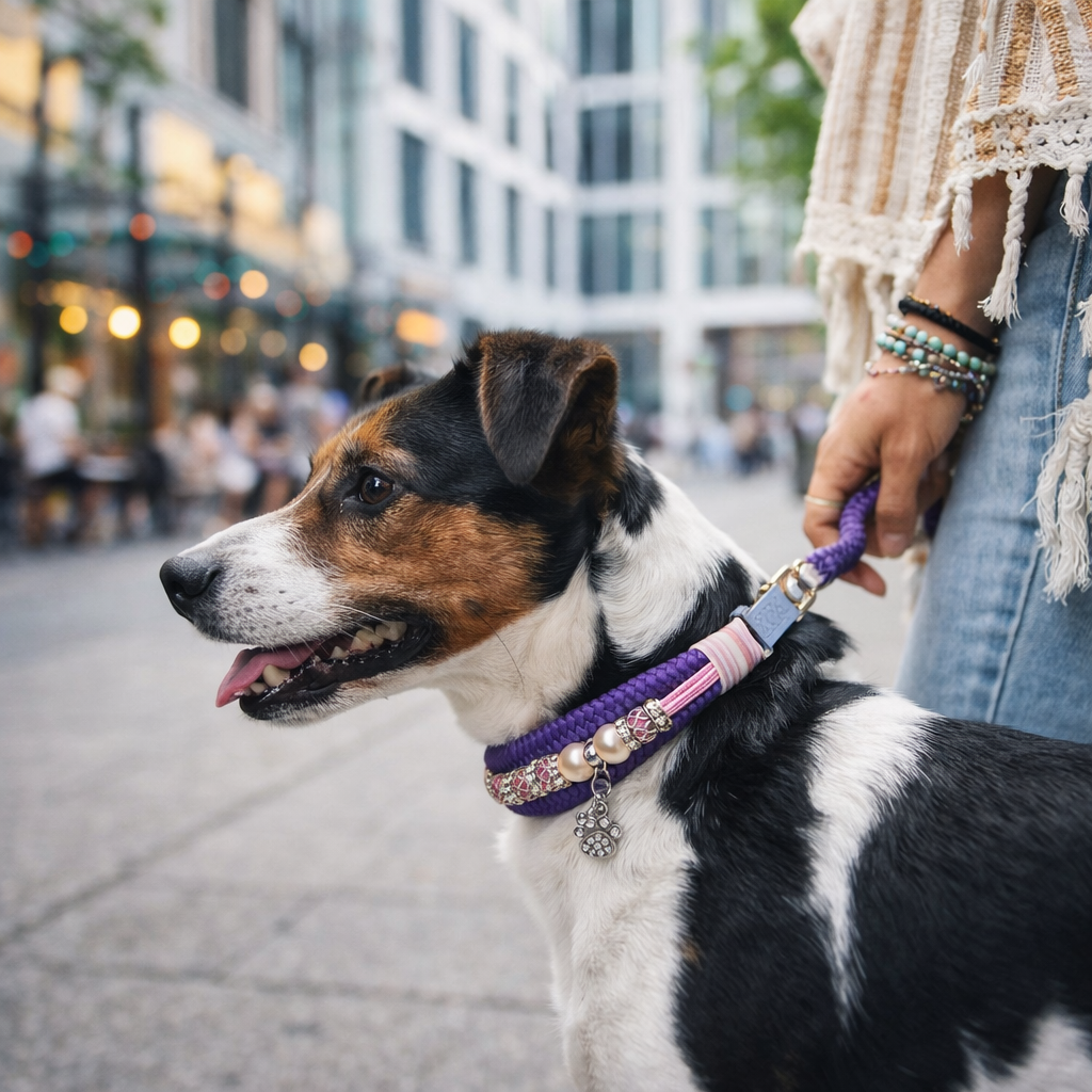 Le collier pour chien « Violette » s’adresse à tous ceux qui en ont assez des colliers ordinaires et qui souhaitent offrir quelque chose de spécial à leur compagnon à quatre pattes. De nombreux modèles traditionnels semblent rapidement interchangeables, offrent peu d’individualité ou perdent en qualité au quotidien. C’est précisément là que ce modèle intervient : Il combine un design remarquable avec une fonctionnalité bien pensée et des matériaux durables.